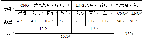 (2)全國天然氣汽車保有量及加氣站數(shù)量(截止2015年年底)