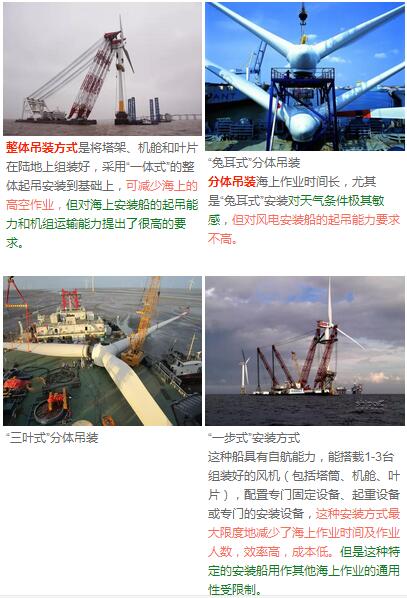 3、海上風(fēng)電主要安裝模式對比目前海上風(fēng)機安裝方式主要有整體吊裝和分體吊裝兩種類型。