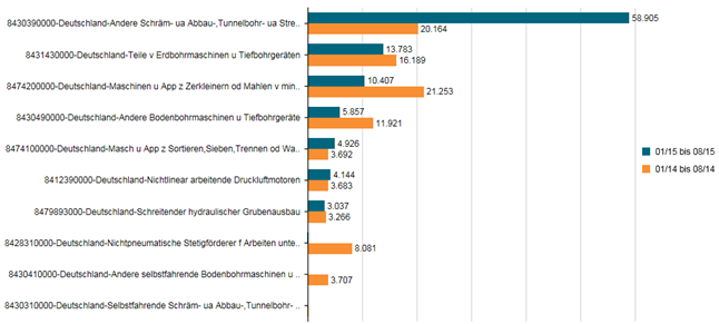 2015年一月至八月中德采礦設備出口數(shù)據(jù)