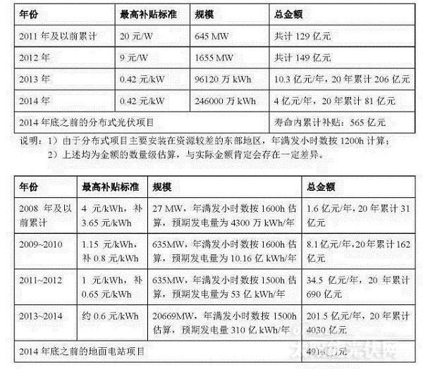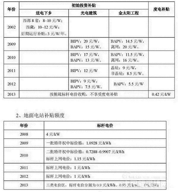 對(duì)于分布式光伏項(xiàng)目,2012年及之前基本為初始投資補(bǔ)貼,2013年后開始實(shí)行度電補(bǔ)貼;
