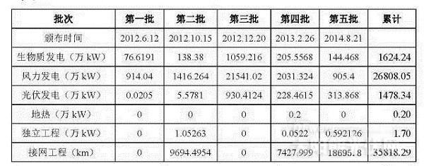 從上表可以看出,五批項(xiàng)目中,容量最大的是風(fēng)電,為268.1GW;其次是生物質(zhì)能發(fā)電,為16.2GW;光伏的容量?jī)H為14.8GW。