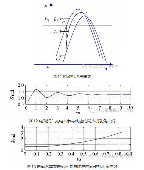 仿真結(jié)果顯示,在電動汽車充電站參與系統(tǒng)響應(yīng)時,系統(tǒng)能保持暫態(tài)穩(wěn)定,而不參與時系統(tǒng)在擾動下失去穩(wěn)定。驗證了該控制策略在面對大擾動下表現(xiàn)出的良好的穩(wěn)定性。
