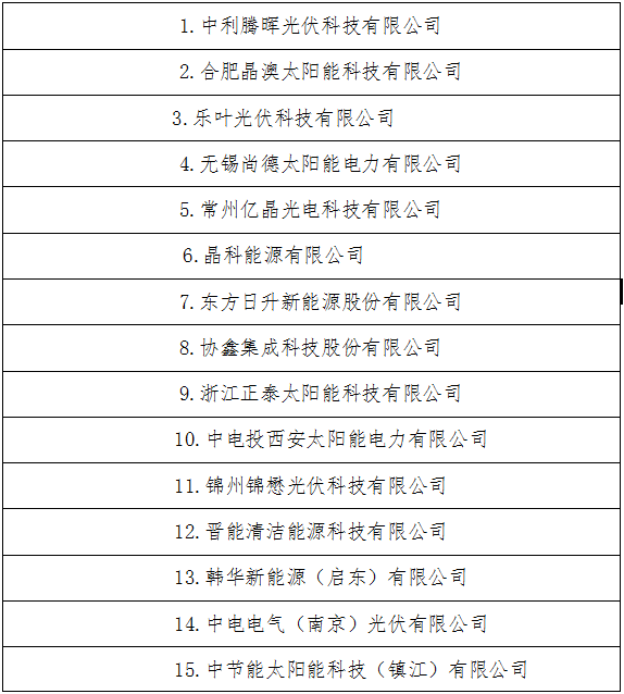 光伏組件“領(lǐng)跑者”認(rèn)證獲證企業(yè)清單