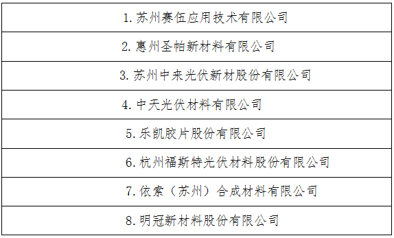 通過光伏背板材料“領(lǐng)跑者”耐久性階段測試的企業(yè)清單