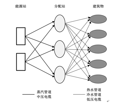 圖2 集中布置型系統(tǒng)能源輸送網(wǎng)絡示意圖