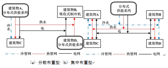 圖1 兩種區(qū)域型分布式供能系統(tǒng)示意圖