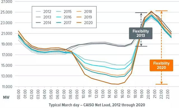 圖1. 加州2012-2020年每年3月某天的負(fù)荷曲線