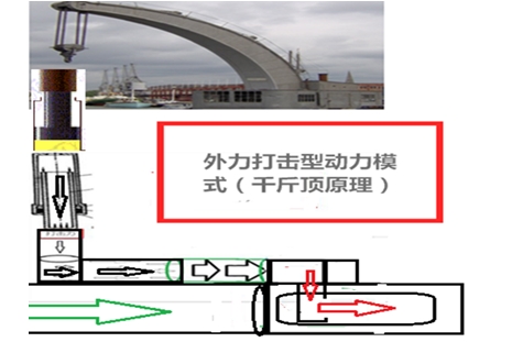 注二:外力打擊型動(dòng)力模式中的工作介質(zhì),本文中以氣體為例描述,實(shí)踐當(dāng)中可以是液體,比如,油,海水等,這要根據(jù)具體的實(shí)際情況選擇適合的介質(zhì)。