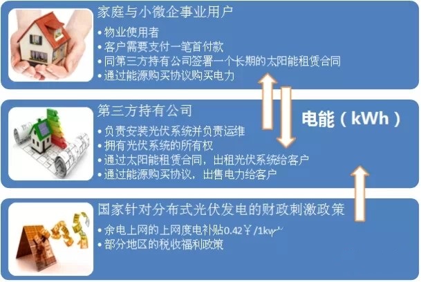第三方持有公司擁有光伏系統(tǒng)的產(chǎn)權(quán),并負(fù)責(zé)購買,安裝和運(yùn)營維護(hù)整個(gè)系統(tǒng);