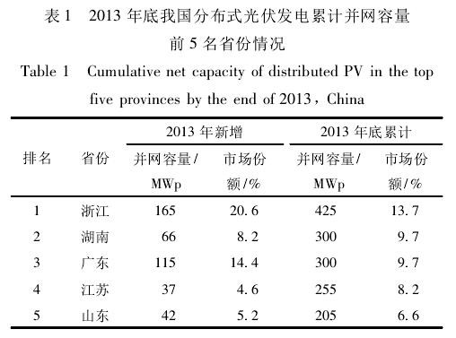 在如此高額的補貼下,分布式光伏電站工作開展仍然屢遭瓶頸的原因在于高額的初裝費用。據(jù)悉,一個中等的分布式光伏電站的初裝費用在5一8萬元之間,這對于一個家庭來說是一項數(shù)目不小的投資,保守估計此投資回收期將長達10年,10年之后分布式光伏電站才能有所收益,如此長的投資回收期使很多投資者望而卻步。這也引起了分布式光伏發(fā)電發(fā)展的不均衡,據(jù)悉目前發(fā)展較快的省份往往集中在經(jīng)濟發(fā)達地區(qū),如浙江、廣東、山東等,而中、西部地區(qū)卻發(fā)展緩慢(表1)。