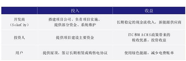由于普通美國家庭沒有那么高可抵扣稅款,ITC政策帶來稅收抵扣無法被家庭充分利用;另一方面,家庭的主要固定資產(chǎn)是房屋,光伏系統(tǒng)的MACRS無法給普通家庭帶來稅項資產(chǎn)(Tax Assets),但資產(chǎn)以光伏系統(tǒng)為主的開發(fā)商可充分利用ITC和MACRS帶來的稅收抵扣和稅項資產(chǎn),為了充分利用上述兩項政策,光伏系統(tǒng)以租代售的模式便應(yīng)運而生。