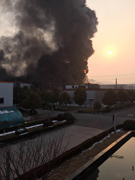 本次火災(zāi)地點(diǎn)位于南京市江寧區(qū)佛城西路123號(hào)中電光伏科技有限公司廠區(qū)內(nèi),據(jù)知情人士透露,火源位于廠區(qū)內(nèi)的電池生產(chǎn)第三車(chē)間,失火原因?yàn)檐?chē)間制絨天花板著火。另?yè)?jù)目擊者稱(chēng),現(xiàn)場(chǎng)火勢(shì)較大,并且伴有爆炸;從目擊者用手機(jī)拍攝的現(xiàn)場(chǎng)照片來(lái)看,距離現(xiàn)場(chǎng)百米之外,可以看見(jiàn)火災(zāi)引發(fā)的滾滾濃煙。記者致電中電光伏相關(guān)人士了解詳細(xì)情況,目前尚未得到中電方面對(duì)于本次火災(zāi)的回應(yīng)