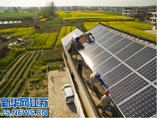 3月28日,海門市四甲鎮(zhèn)的電力施工人員正在為四甲鎮(zhèn)余合村姜雪強家中辦理屋頂光伏發(fā)電并網(wǎng)聯(lián)通。姜雪強平時一直在外地打工從事水電安裝工作,他對光伏發(fā)電的關(guān)注早在三年前,這次他個人投資六萬余元,在自家屋頂安裝了10千瓦的太陽能光伏組件。