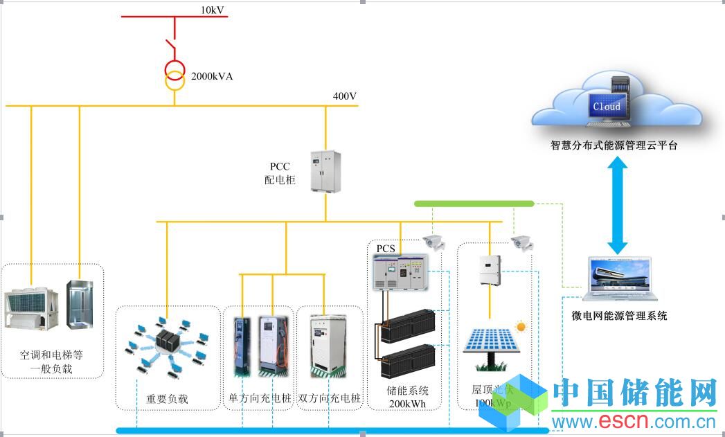 下圖則為上海國際汽車城微電網(wǎng)整體結(jié)構(gòu)示意圖。