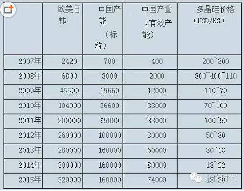 到2014年初,隨著市場回暖,多晶硅價格上升到15~17萬/噸,但國內(nèi)也僅有保利協(xié)鑫、新疆特變電工、四川永祥等三四家工廠能夠在這樣的價格下保持不虧損,因此,由于多晶硅的進口屢禁不止,對國內(nèi)市場沖擊仍然較大,因此,價格于2014年下半年再度下跌,這種跌勢持續(xù)到2015年底,多晶硅的價格在10~12萬/噸的低價徘徊。這樣的價格如果再持續(xù)一段時間,可以預見的是,中國的多晶硅產(chǎn)能中將有更多的有效產(chǎn)能永久變?yōu)闊o效產(chǎn)能。