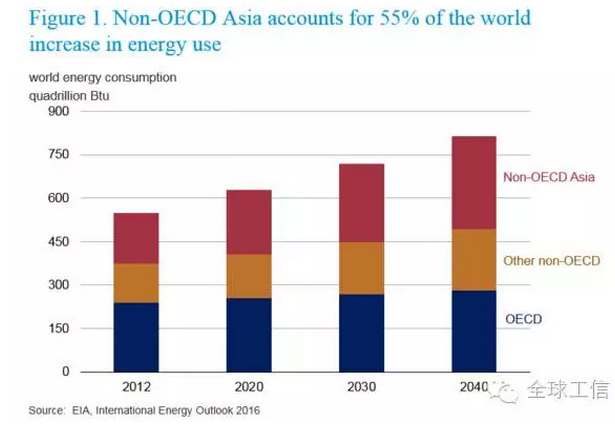 (非經(jīng)合組織成員的亞洲國家能源使用率占到全球的55%)