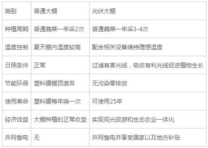 圖表1:光伏農(nóng)業(yè)大棚與普通大棚對比