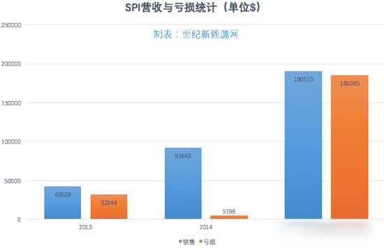 2016年5月17日,SPI發(fā)布其2015年度財報。財報顯示:2015財年SPI營收1.9億美元(約12.44億人民幣)。然而,2015財年SPI凈虧損高達(dá)1.85億美元(約12.11億人民幣),創(chuàng)SPI歷年虧損新高。