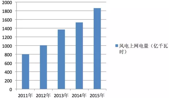 2015年全國(guó)總發(fā)電量為56184億千瓦時(shí),相比2014年的56496億千瓦時(shí)有所下降,也是近些年來(lái)全國(guó)總發(fā)電量的首次下降。與全國(guó)總發(fā)電量下降相比,2015年風(fēng)電上網(wǎng)電量再創(chuàng)新高,達(dá)到了1863億千瓦時(shí)。2015年的風(fēng)電上網(wǎng)電量并非近五年增幅最高的,相比于2011年45%以上、2012年40%以上和2013年35%以上的增長(zhǎng)幅度,2015年風(fēng)電上網(wǎng)電量同比增長(zhǎng)相差甚遠(yuǎn),僅超過(guò)了20%。但這已經(jīng)比2014年的10%的增幅提高了不少。這樣的發(fā)電量增長(zhǎng)速度,是在全國(guó)電力需求放緩的背景下獲得的,顯得更為不易。