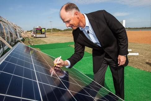 在“Babcock Ranch”項目啟動時,在太陽能電池板上簽字留念的Kitson&Partners公司法人代表Syd Kitson(攝影:Kitson&Partners)