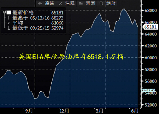 (圖2:美國EIA俄克拉荷馬州庫欣原油庫存數(shù)量圖,最新數(shù)量為6518.1萬桶)