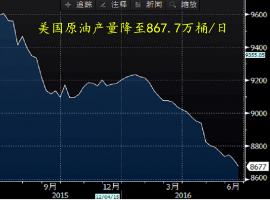 (圖3:美國國內(nèi)原油產(chǎn)量變化圖,最新產(chǎn)量為867.7萬桶/日)