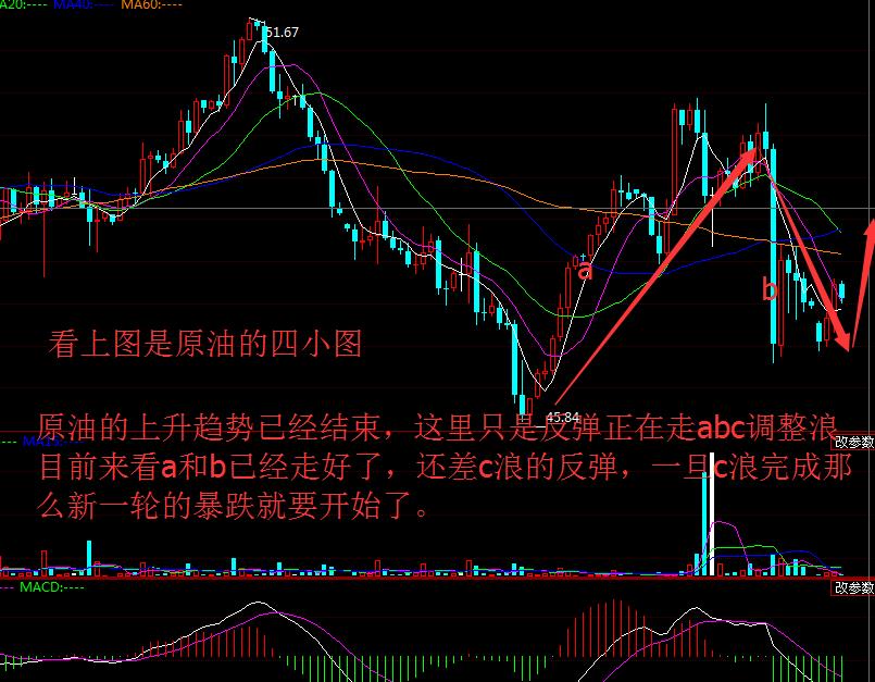 C浪是反彈向上的,因此今晚原油的操作就是逢低做多為主,做空為輔。4小時的macd綠柱逐漸縮短,預(yù)計明日會翻紅,這也是逢低做多的證據(jù)。以美原油為例,可以在47.55布局多單,止損在47.30,止贏48.30附近。