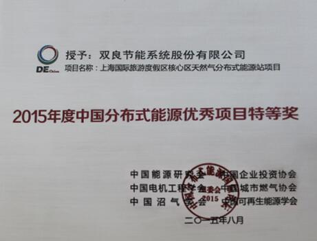 2015年:上海迪斯尼樂(lè)園項(xiàng)目,全球唯一使用分布式能源系統(tǒng)的迪斯尼樂(lè)園 榮獲2015年度中國(guó)分布式能源優(yōu)秀項(xiàng)目特等獎(jiǎng)