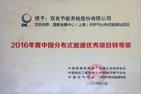 在剛剛結(jié)束的"2016中國(guó)分布式能源國(guó)際論壇"會(huì)議上,雙良憑借國(guó)家會(huì)展中心(上海)天然氣分布式能源站項(xiàng)目的成功運(yùn)行,斬獲"2016年度分布式能源優(yōu)秀項(xiàng)目特等獎(jiǎng)"的殊榮,實(shí)現(xiàn)了2014-2016年中國(guó)分布式能源優(yōu)秀項(xiàng)目特等獎(jiǎng)三連冠。