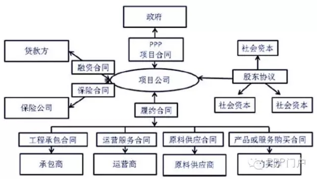 各參與主體之間通過簽署合同建立合作關系,PPP項目基本合同體系大致如下: