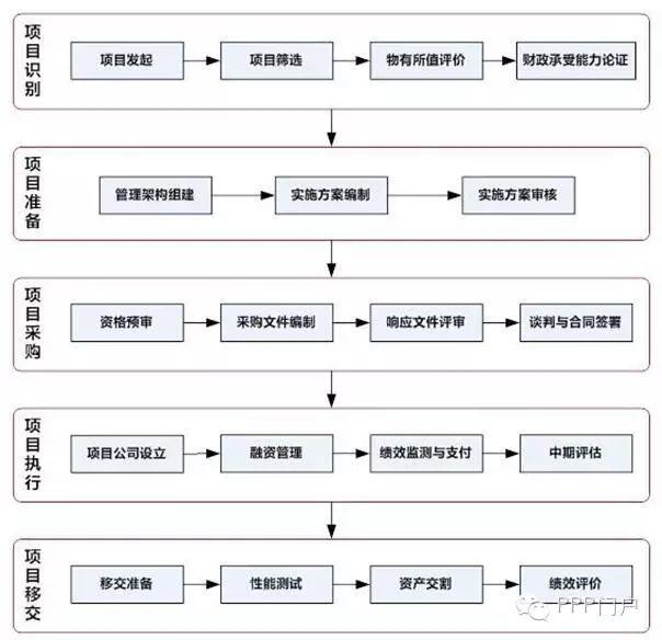 財政部《政府和社會資本合作模式操作指南(試行)》(財金(2014)113號),對PPP項目識別、準備、采購、執(zhí)行、移交等操作環(huán)節(jié)進行了規(guī)范。這其中尤其需要重視充分做好物有所值評價,通過這種評估方法,判斷采取PPP模式與政府傳統(tǒng)采購模式相比,是否降低項目全生命周期成本。流程圖大致如下: