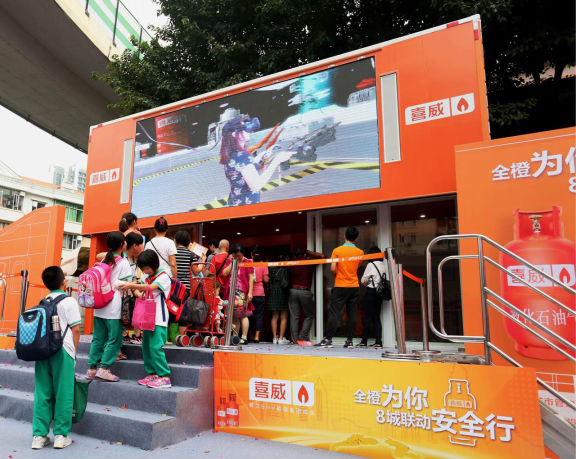 喜威“全橙為你安全行”結(jié)合了最先進的極客級高科技互動技術(shù)——MR混合現(xiàn)實,是能源行業(yè)與消費者互動的首次高科技探索。搭載混合現(xiàn)實游戲《超級安全大作戰(zhàn)》的喜威“安全大橙車”,能讓消費者瞬間置身于未來的能源星海中,親身體驗極富動感的科幻動作游戲。車身大屏幕也將同步玩家實況,讓圍觀的消費者可實時共享游戲的刺激樂趣,并掌握安全用氣的要訣。
