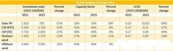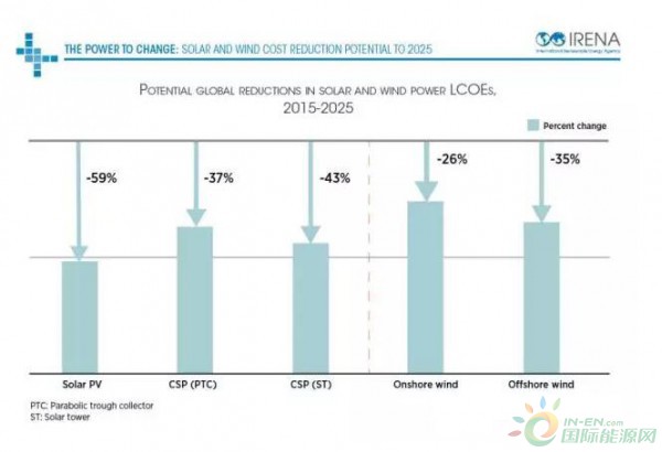 根據(jù)國(guó)際可再生能源署剛剛發(fā)布的報(bào)告預(yù)測(cè),光伏、光熱、陸上和海上風(fēng)電成本將大幅度下降: