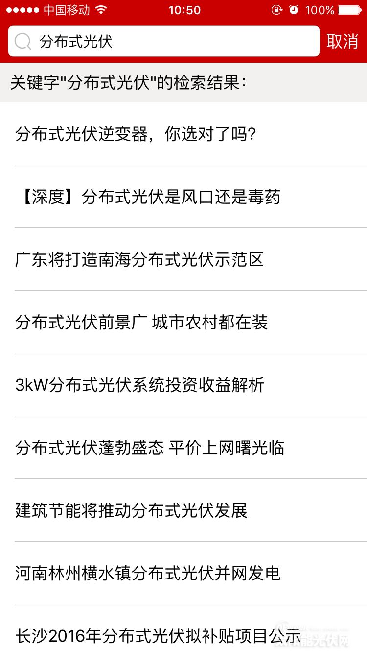 舉個例子,當我們在這一款高科技行業(yè)手機APP軟件界面當中搜索“分布式光伏”相關新聞信息時,能夠搜索到分布式光伏、光伏補貼等最新最前沿的資訊信息與動態(tài)。