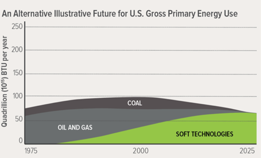 圖1B:替代性的軟能源路徑——通過結(jié)合高效使用和“軟技術(shù)”(多樣的、正確規(guī)模、正確質(zhì)量、廣泛的可再生能源),獲得同樣的GDP增長。