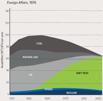 而就在那時,筆者發(fā)表于《外交》雜志的文章《能源策略:不可行之路?》提出了一種新理念。該文章重新審視了當時面臨的能源問題并為美國能源發(fā)展戰(zhàn)略提供了一條可替代的發(fā)展路徑:“硬能源路徑”與當時的主張無異;而“軟能源路徑”則強調(diào)可再生能源供應(yīng)轉(zhuǎn)型與能效的結(jié)合。該篇文章很快成為《外交》雜志有史以來翻版次數(shù)最多的文章,并在前互聯(lián)網(wǎng)時代廣為傳播。而四十年后的今天,通過重新審視當時的反應(yīng)、持續(xù)影響力以及基本觀點,我們可以從中總結(jié)經(jīng)驗,展望未來。