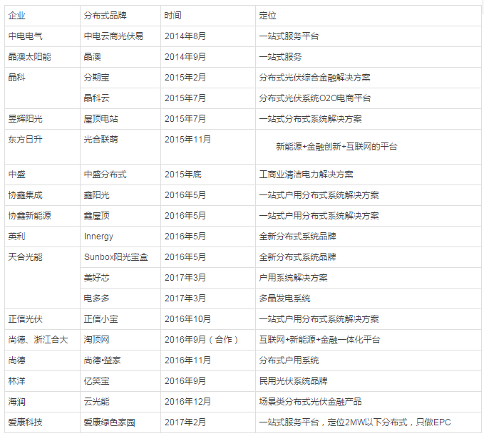 表2:主流光伏制造公司分布式品牌一覽