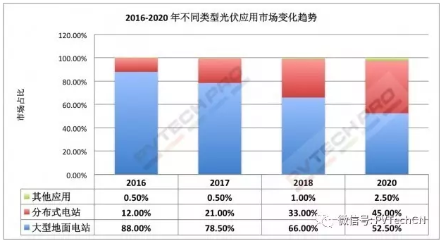 圖四:2016-2020年不同類型光伏應(yīng)用市場(chǎng)變化趨勢(shì),數(shù)據(jù)來源:CPIA