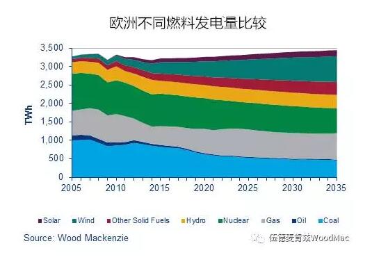 可再生能源方面,補(bǔ)貼政策的發(fā)展減少了支持無碳電力的成本,同時(shí)也使獲得補(bǔ)貼的技術(shù)更加融入批發(fā)市場。2016年,可再生能源占?xì)W洲總發(fā)電量約30%,十年前僅為目前的一半左右。值得一提的是,太陽能的發(fā)展還將提速。 2020年至2025年,公用事業(yè)規(guī)模的太陽能將在北美許多地區(qū)成為經(jīng)濟(jì)上最具吸引力的技術(shù)。