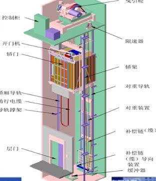 適合幾十米到幾百米摩天大樓樓層高度或長度,也適合礦井直洞上下運(yùn)輸貨物,可以說在行程方面無任何限制,只要你需要。立著就像下圖的電梯一樣。用電不多,功效很大。它是由電動機(jī)、制動器、聯(lián)軸器、拉引輪、導(dǎo)向輪及附屬設(shè)備組成。如圖所示。
