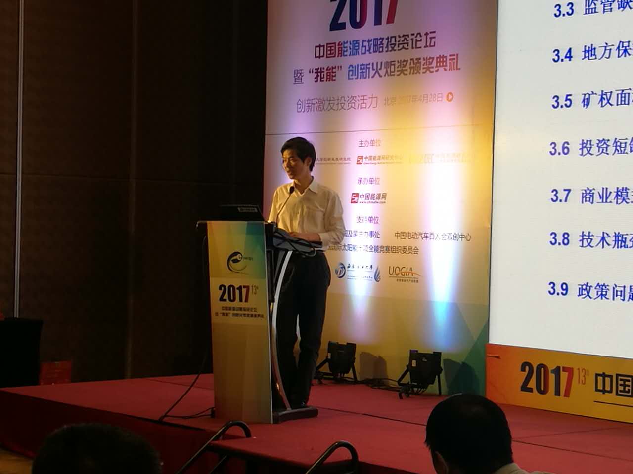中國(guó)企業(yè)投資協(xié)會(huì)秘書長(zhǎng)宋曉鶴致辭:2017年,隨著能源領(lǐng)域供給側(cè)改革和能源轉(zhuǎn)型逐漸推進(jìn),創(chuàng)新已經(jīng)成為能源行業(yè)尋求新的增長(zhǎng)與突破的必經(jīng)之路,而創(chuàng)新與創(chuàng)業(yè)也成為能源行業(yè)的“下一個(gè)風(fēng)口”,能源領(lǐng)域需要從思維、技術(shù)到策略推動(dòng)創(chuàng)新。
