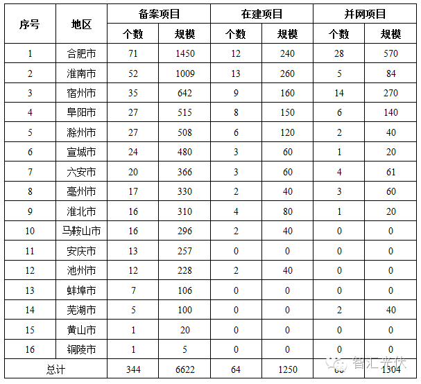 2016年10月27日,安徽省能源局發(fā)布了《我省先建先得光伏電站建設(shè)形勢分析報告》,介紹了安徽省的光伏地面電站開發(fā)情況。