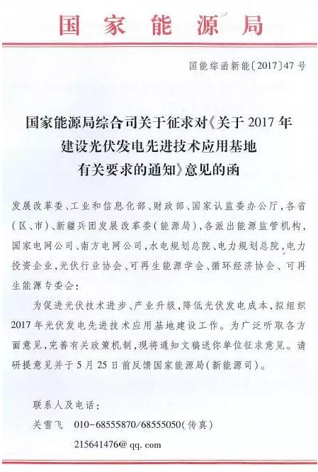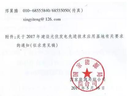 各單位需在5月25日之前將意見反饋到國家能源局新能源司。