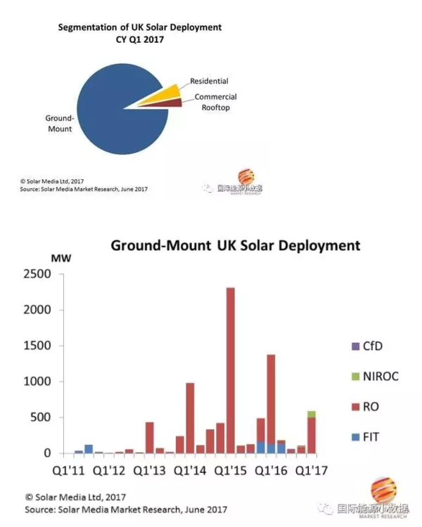 英國可再生能源義務(wù)證書(Renewable Energy Certificate)對地面光伏項目的激勵政策在2017年3月31日到期,英國光伏開發(fā)商在2017年第1季度搶裝了640兆瓦爭取補(bǔ)貼的最后一班車。再往后,英國光伏就主要靠市場競爭力來說話了。