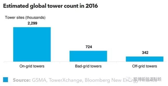 在如今運行的342, 000座未接入電網(wǎng)的通迅塔中,采用太陽能發(fā)電來進行供電的不到3%。彭博新能源財經(jīng)認為,如果所有的離網(wǎng)通訊塔都安裝了混合太陽能發(fā)電系統(tǒng)(光伏電池、鋰離子電池與柴油發(fā)電機)的話,到2020年,就全球潛在市場規(guī)模而言,光伏電池的產(chǎn)量將達1.7GW(直流電),而鋰離子電池的產(chǎn)量將達1.3GWh。如果供電不足的地區(qū)也能安裝太陽能發(fā)電系統(tǒng),混合太陽能發(fā)電系統(tǒng)的市場規(guī)模還會進一步大幅擴大。印度與撒哈拉以南非洲地區(qū)是全球最大的混合太陽能發(fā)電系統(tǒng)市場。
