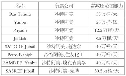 表為沙特當前煉廠及生產(chǎn)能力