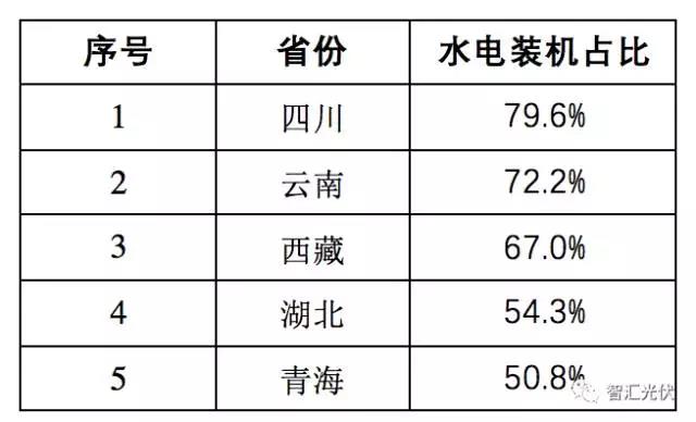 截至2016年底,全國(guó)各省水電累計(jì)裝機(jī)占比超過50%以上的省份如下表。