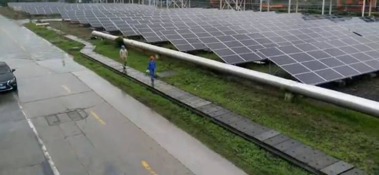 河南林州某座并網(wǎng)的光伏電站,只是組件前面的草貌似有點高……