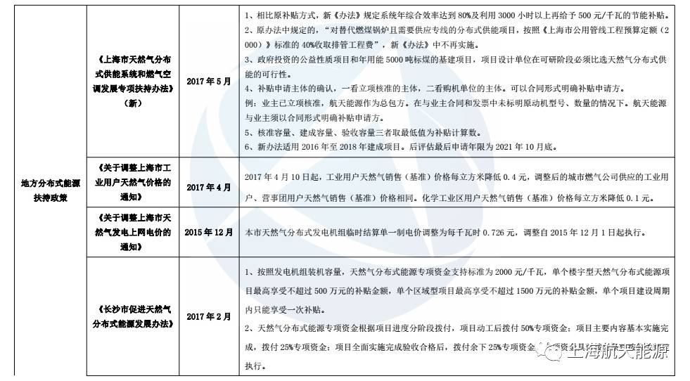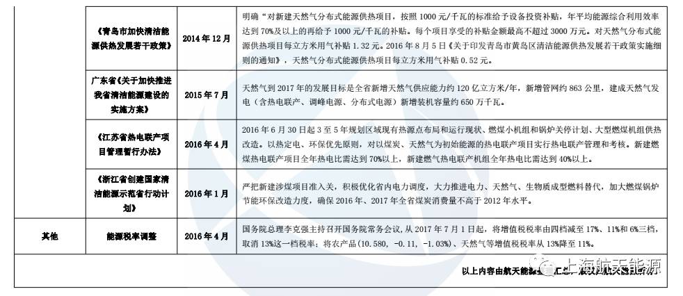 “十二五”以來,國家及部分省市陸續(xù)出臺了一系列法律、法規(guī)、規(guī)劃、標(biāo)準(zhǔn)等相關(guān)文件,從財政政策、制定地方基礎(chǔ)設(shè)施和供熱規(guī)劃、清潔發(fā)展機(jī)制、入網(wǎng)政策等方面積極扶持分布式能源,為天然氣分布式能源的進(jìn)一步發(fā)展奠定了良好的基礎(chǔ)。