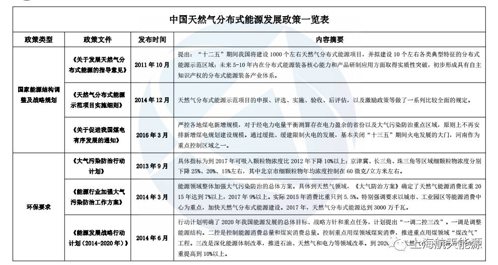 這些文件中,有國家能源結(jié)構(gòu)等整體規(guī)劃,有天然氣分布式行業(yè)的指導(dǎo)性意見和分布式有關(guān)的電力、天然氣基建等外圍行業(yè)改革方向,以及地方上落實(shí)國家政策的扶持辦法。